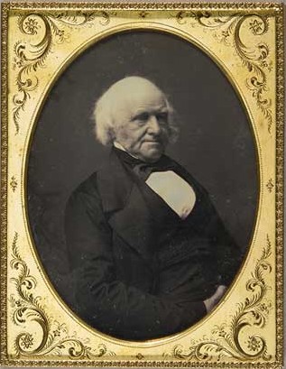 ■第9代ハリソンはカメラの前に座った最初の現職大統領である。下の写真は、フィラデルフィアの写真師ジュスタス・ムーア氏が、発明から2年ほど経ったダゲレオタイプ写真機を用い、1841年3月、大統領就任間もないハリソン大統領を撮影したもので、現在、メトロポリタン・ミュージアム・オブ・アートが所蔵している。ちなみに、既刊の書籍でこの写真を掲載しているのは唯一、アメリカン・ヘリテッジ社「写真で綴る歴代大統領」(1968年発行)だけである(同書第1巻P.258)。
