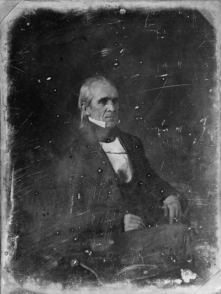 左からジョン・メーソン司法長官(1845-1846在任)、ウィリアム・マーシー陸軍長官、ケイブ・ジョンソン郵政長官、ポーク大統領、ジョージ・バンクロフト海軍長官(在任=1845年3月11日~1846年9月9日)、ロバート・ウォーカー財務長官。ホワイトハウス内部で撮影された最初の写真。撮影年はバンクロフト海軍長官の在任中の1845年3月11日から1846年9月9日までの間。